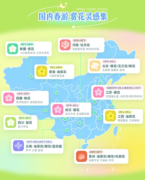 西藏林芝赏桃花、新疆伊犁不雅杏花、川西环线赏梨花等需要提前预订的长线赏花行程近期订单量增长显赫。新疆杏花联系热度增长116%,四川金川梨花热度高潮127%,恰逢西藏自治区缔造60周年的林芝桃花节,更是凭借“雪域桃花物语”盛典派对系列行径、“春分桃夭宴”万东说念主石锅免费品等一系列丰富多彩的节庆体验热度大涨189%。