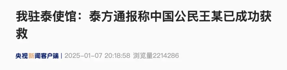 据泰方通报,中国公民王某已于当地本事7日下昼胜仗获救,中国驻泰使领馆对泰国政府偏激他相关各方为此所作极力和富足奏效的责任暗意感谢。