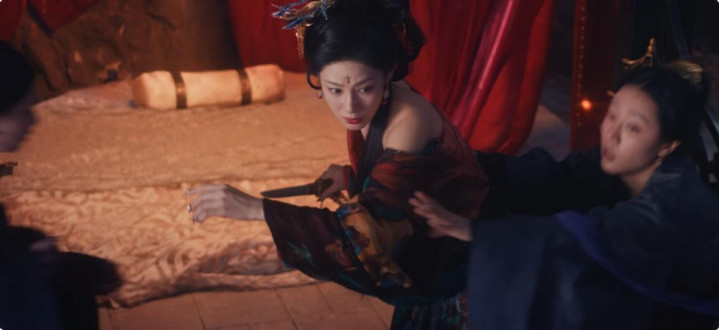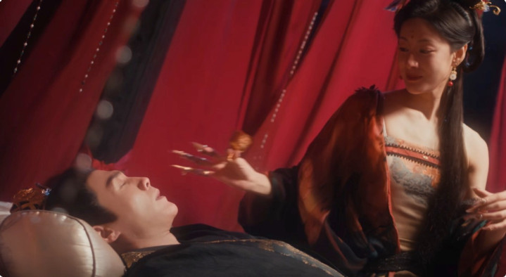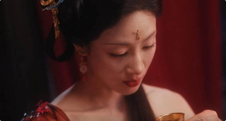 剧情里,秦妃喝下并蒂酒,把存一火系于天子身上,这种爱得豪恣的举动,如果演不好很容易显得矫强。