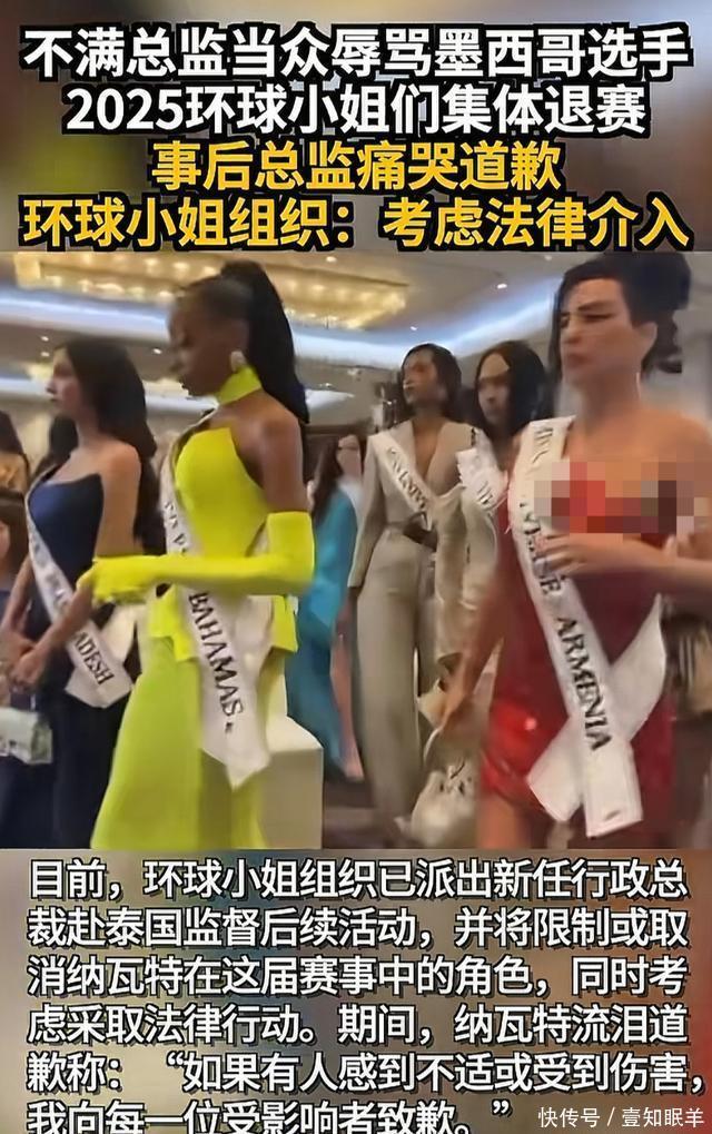 当泰国各人姑娘总监纳瓦特的“愚蠢”“头脑浅易”砸向墨西哥选手法蒂玛时,这场11月4日的赛前会议,陡然成了选好意思圈5年争议的“总爆发现场”,法蒂玛愤而离席的背影刚消释,好意思国、巴西等20国选手的座椅便接连空了,只留泰国选手在原地。媒体报谈中,纳瓦特那句“念念比赛就坐下”的胁迫像个见笑,而这场集体退赛,不是选手们一时的心思上面,是2020到2024年5起行业“权力霸凌”攒出的“反击信号弹”。 一句短长,为何炸出20国选手的“集体叛变”