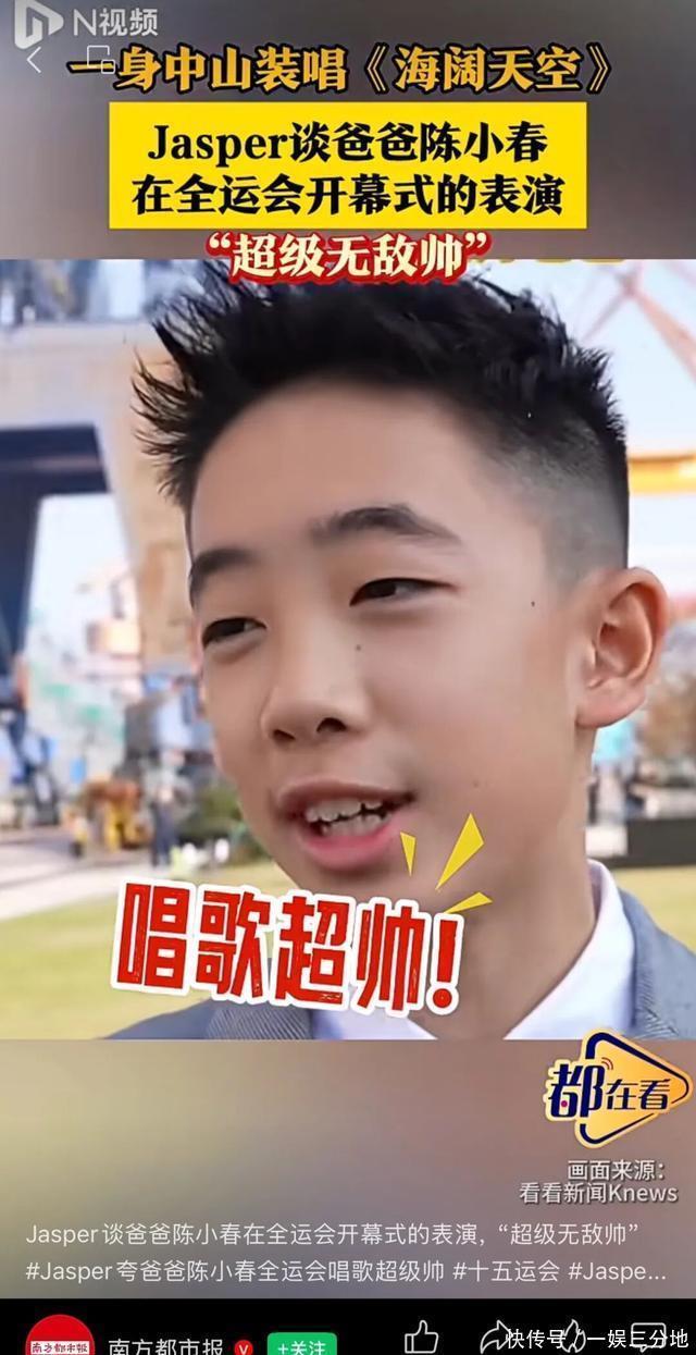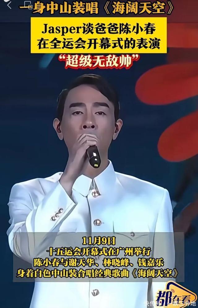 Jasper采纳采访,谈到看到陈小春在全运会开幕式献技唱《海阔太空》,他以为爸爸超帅。
