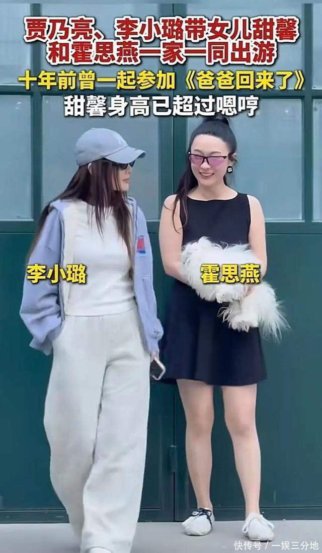 本年5月,网友偶遇霍想燕、李小璐两多年好友带着嗯哼、甜馨碰面,杜江和贾乃亮也在场。