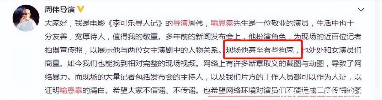 那部影片的男导演还为喻恩泰讲解掩蔽,称他照旧很“板滞”了。