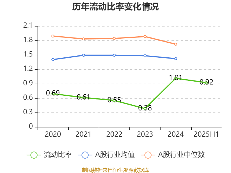2025年上半年,公司流动比率为0.92,速动比率为0.68。