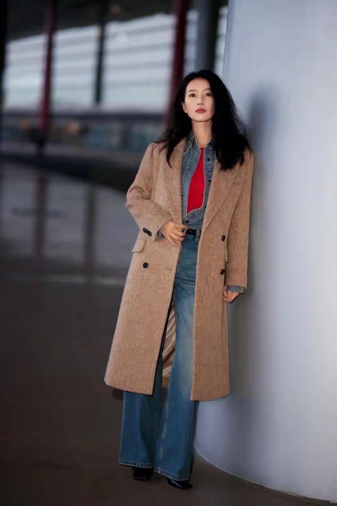 高圆圆遴聘这样的灰色大衣,照实作念到了极简的搭配格调,基本上我们平日群众女生照着穿也不会出错。
