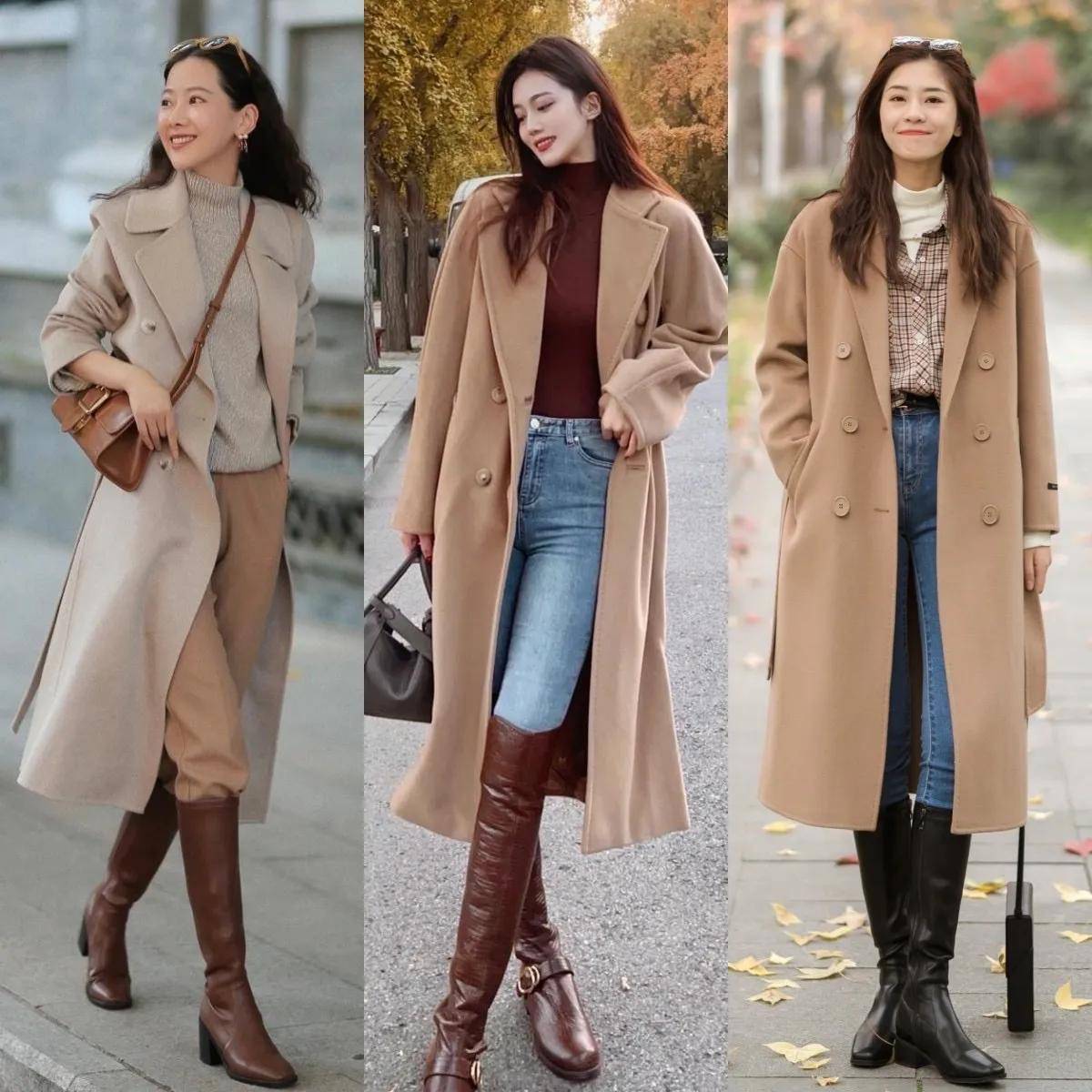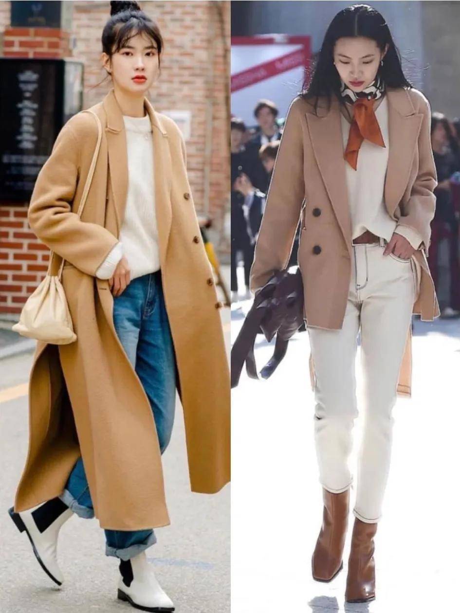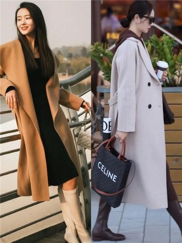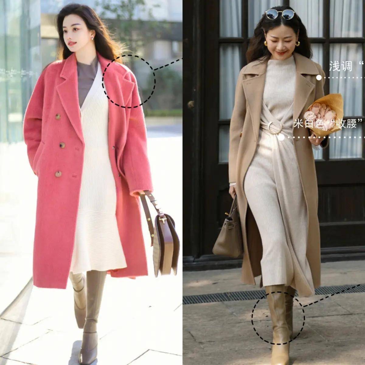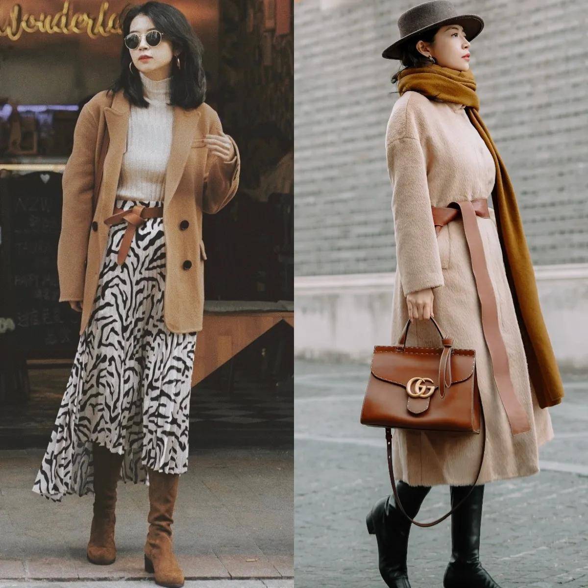 其实短外衣和长外衣搭配上裙子照旧有一定的区别的,便是像上头这位“三木”前锋博主,用的短大衣搭配上印花的半身裙和驼色长筒靴,就莫得浅驼色的长大衣外衣相比有气场,啊,提议公共选大一的技艺略微长少量,盖过膝盖向上三至五厘米的大衣外衣最好。