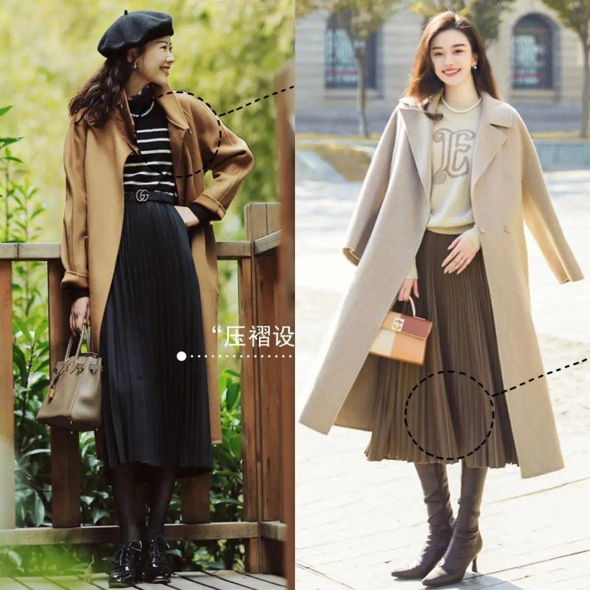 思要“轻熟风”保举遴聘任百褶半身裙的搭配,因为百褶半身裙穿在身上相比有垂坠感,其次神情是伞状的版型,有时是裙摆有点外扩的规划,这样的裙子关于胯宽腿粗梨形骸魄的女性极度友好,不外我们的裙子长度盖过膝盖到小腿肚的位置就行,太长也会压身高,穿的技艺再加上一件相比有品性的大衣外衣,就能呈现出高档优雅的穿搭格调。