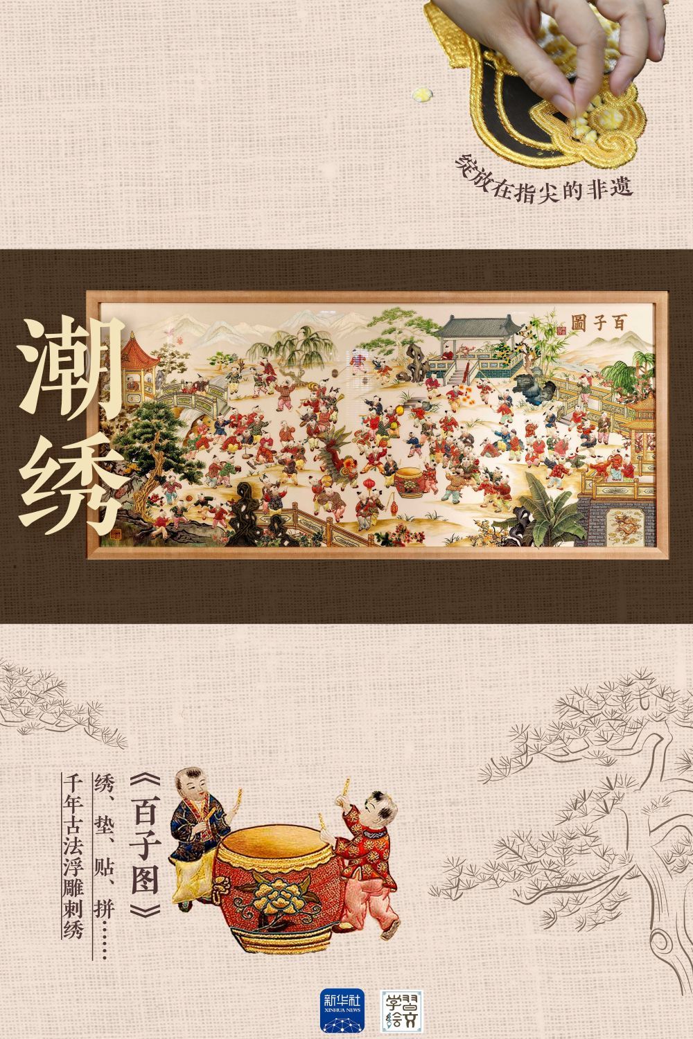 潮绣,属我国四大名绣中的粤绣门派,最大的特质是立体垫高,以绣艺良好致密、构图平衡充足著称,颜色亮丽又具立体感。
